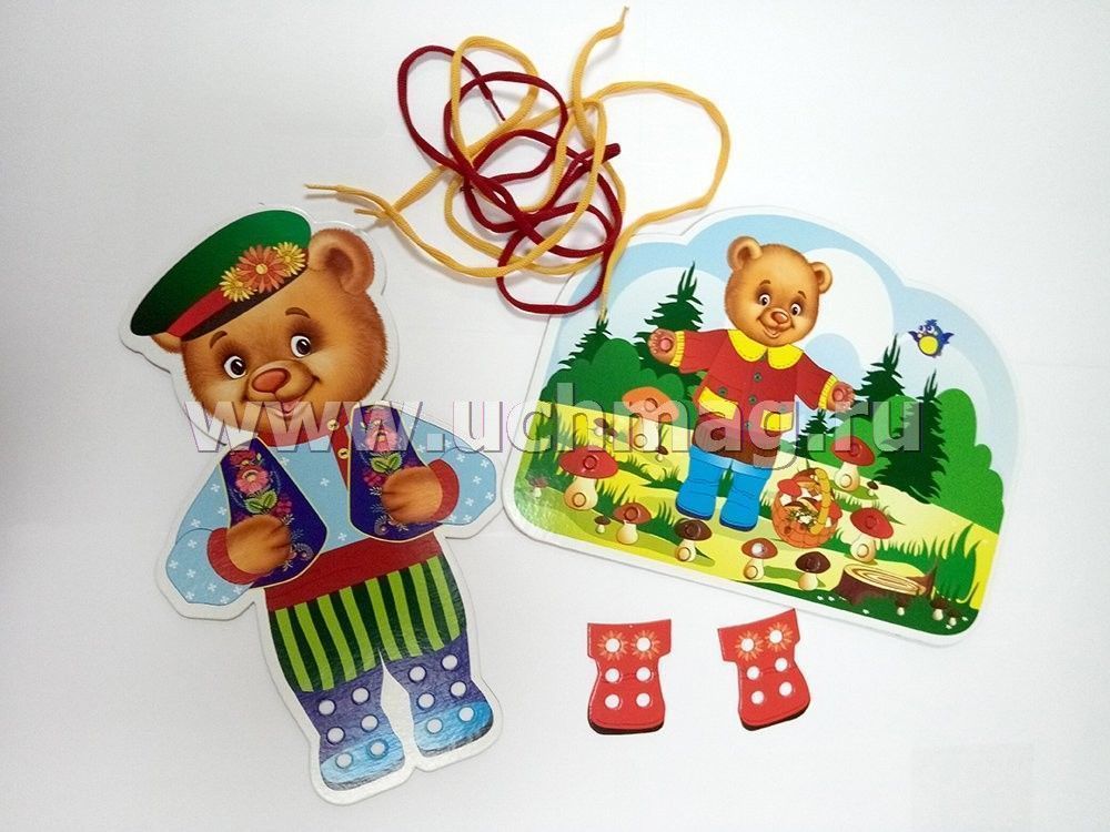 Весёлый и озорной медвежонок Плюшик представляет развивающую игрушку - шнуровку, предназначенную для детей раннего и младшего дошкольного возраста.