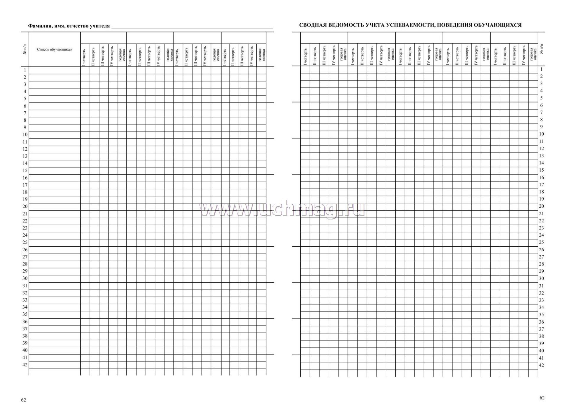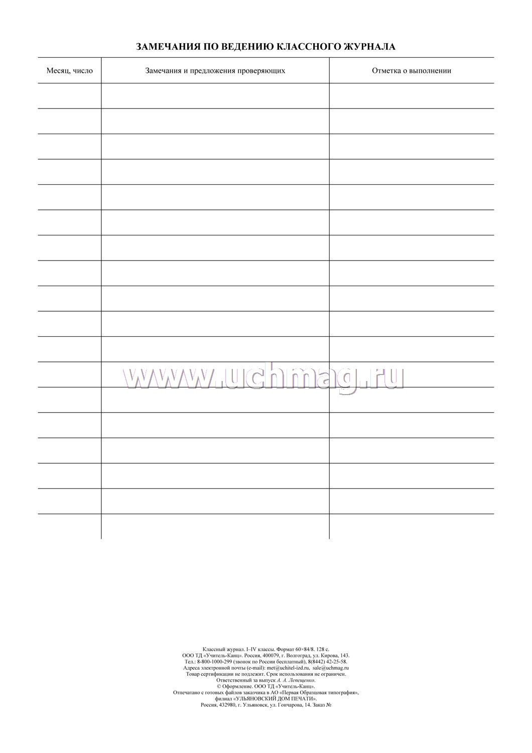 Классный журнал 1-4 классы
