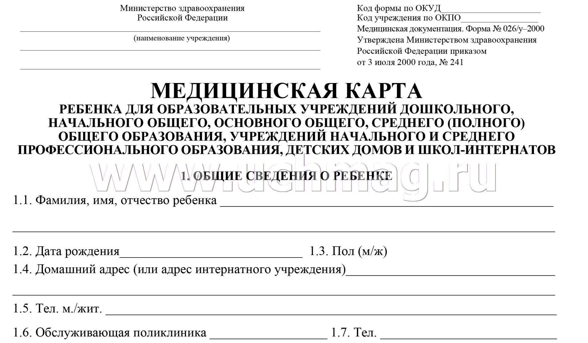Медицинская карта ребёнка: цвет синий