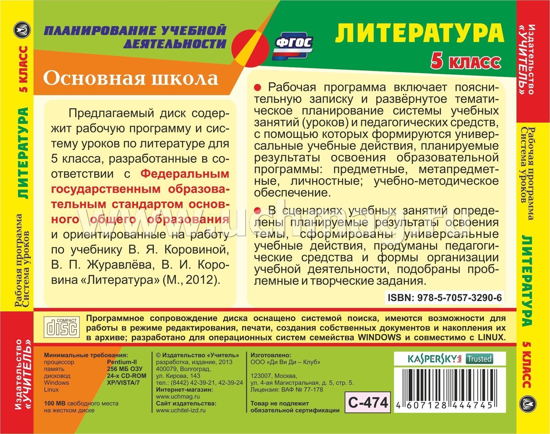 На диске представлена рабочая программа и подробные поурочные разработки по литературе для 5 класса, составленные в соответствии с федеральным государственным образовательным стандартом основного общего образования. Поурочные планы ориентированы на работу по учебнику В. Я. Коровиной, В. П. Журавлёва, В. И. Коровина «Литература» (М.: Просвещение, 2016).