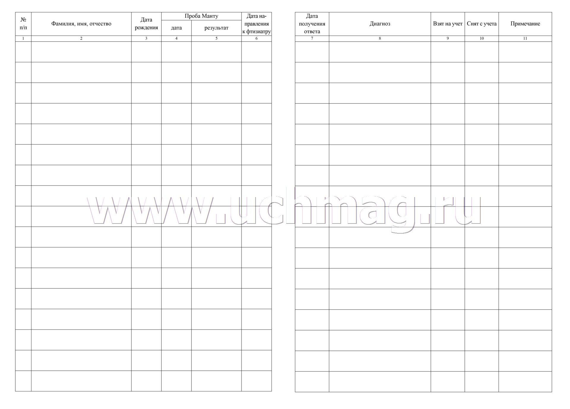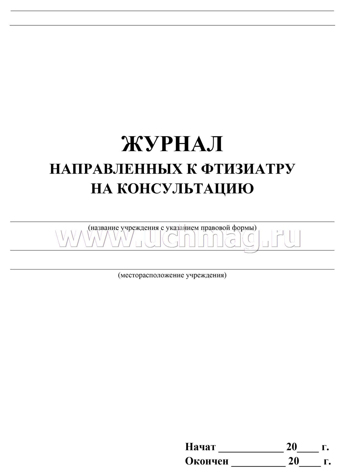 Журнал направленных к фтизиатру на консультацию: Формат А4,блок-бумага писчая, обложка офсет 120.