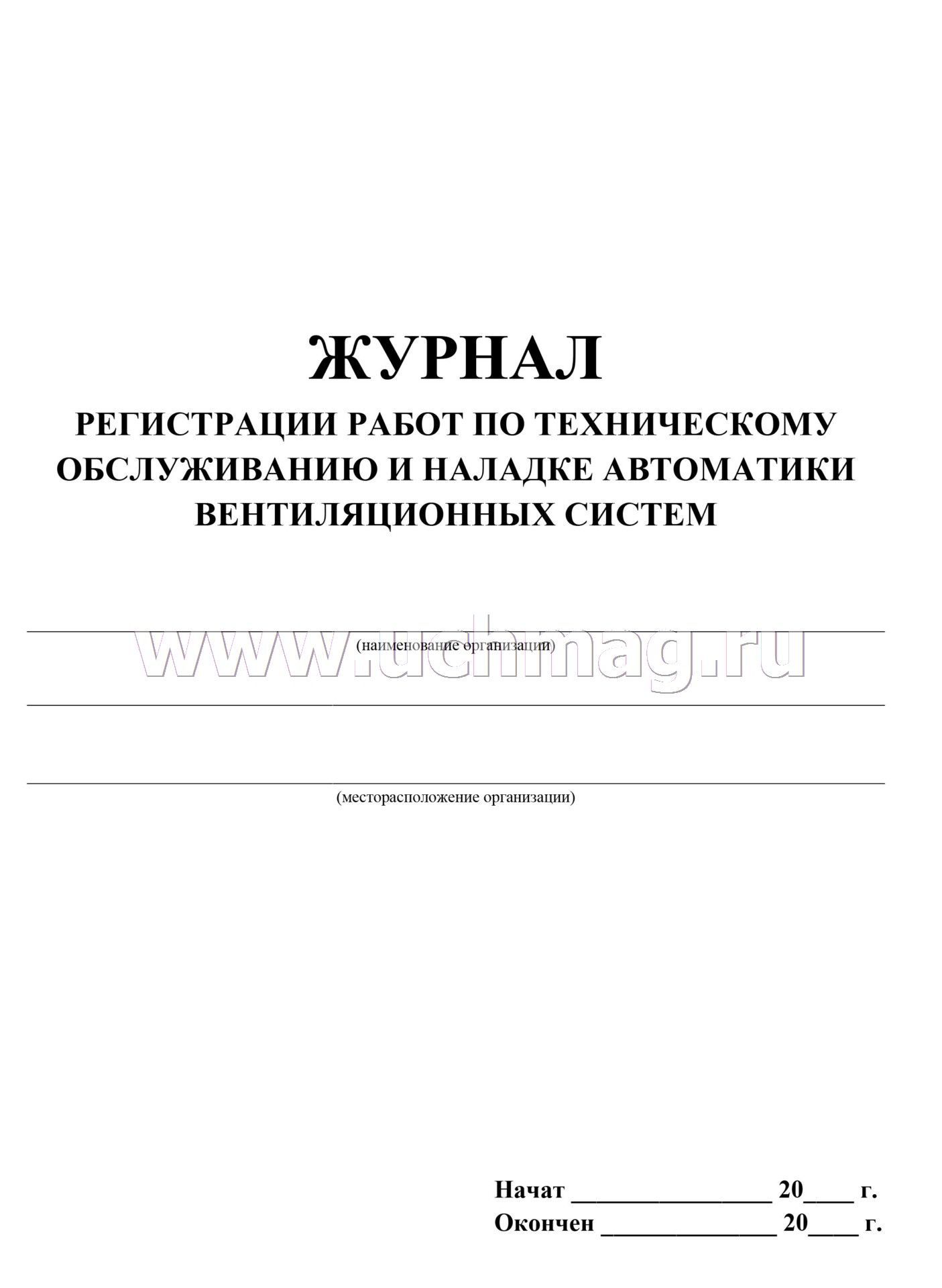 Журнал регистрации работ по техническому обслуживанию и наладке автоматики вентиляционных систем: (Формат 60х84/8, бл. писчая, обл. офсет 160, 64 с.)