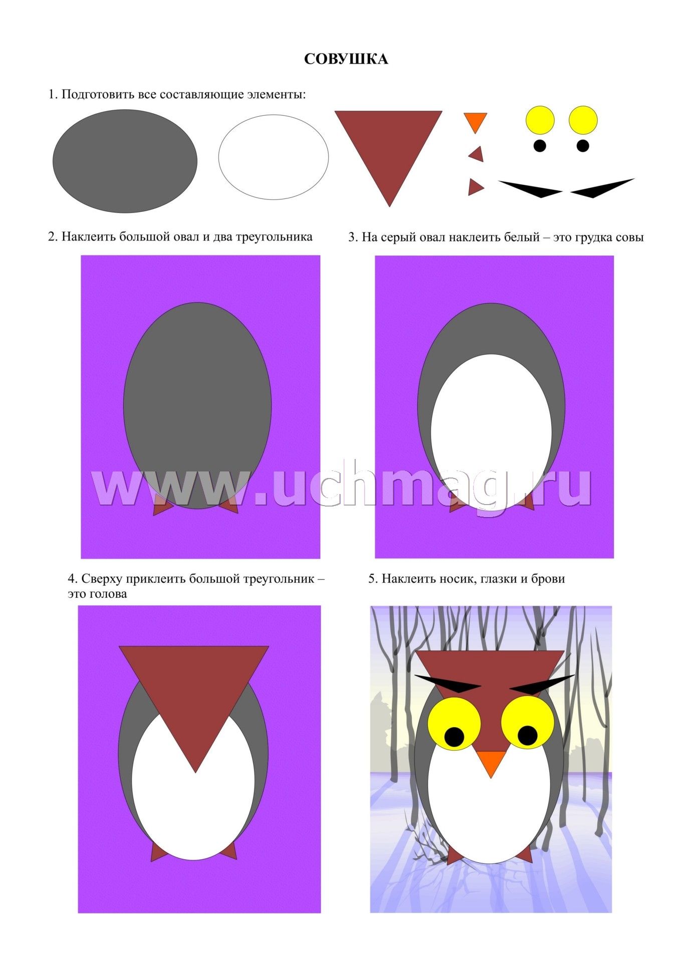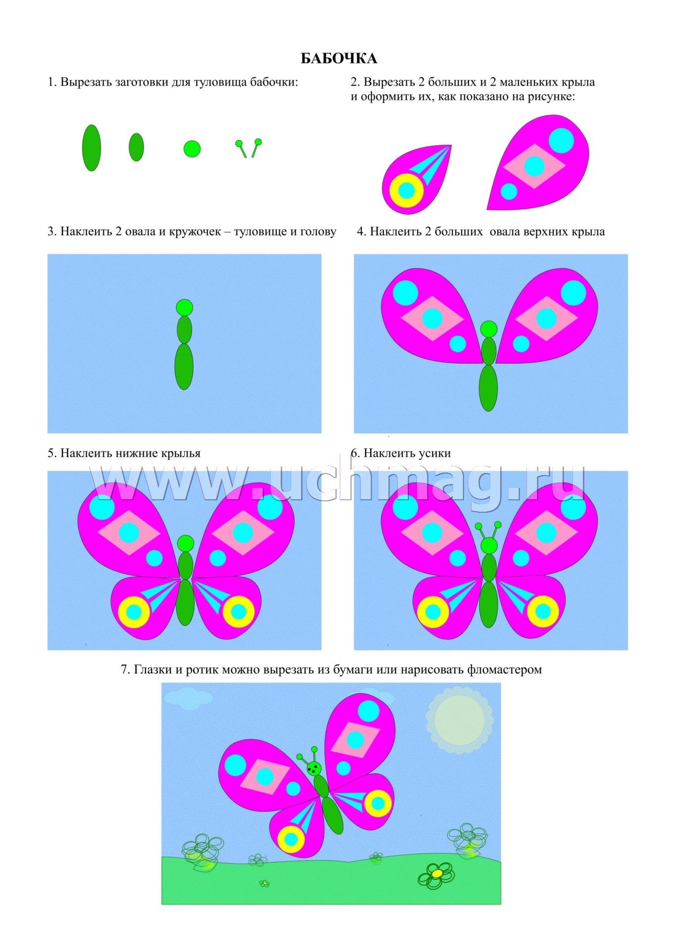 Предлагаемый наглядно-дидактический комплект включает в себя 8 красочно оформленных карт и 8 цветных шаблонов, позволяющих ребенку в совместной деятельности со взрослым или самостоятельной работе осуществить в определенной технологической последовательности, действуя по алгоритму и применяя приемы аппликации, выполнение 8 моделей из бумаги (грузовая машина, бабочка, рыбка, сова, нарциссы и др.).