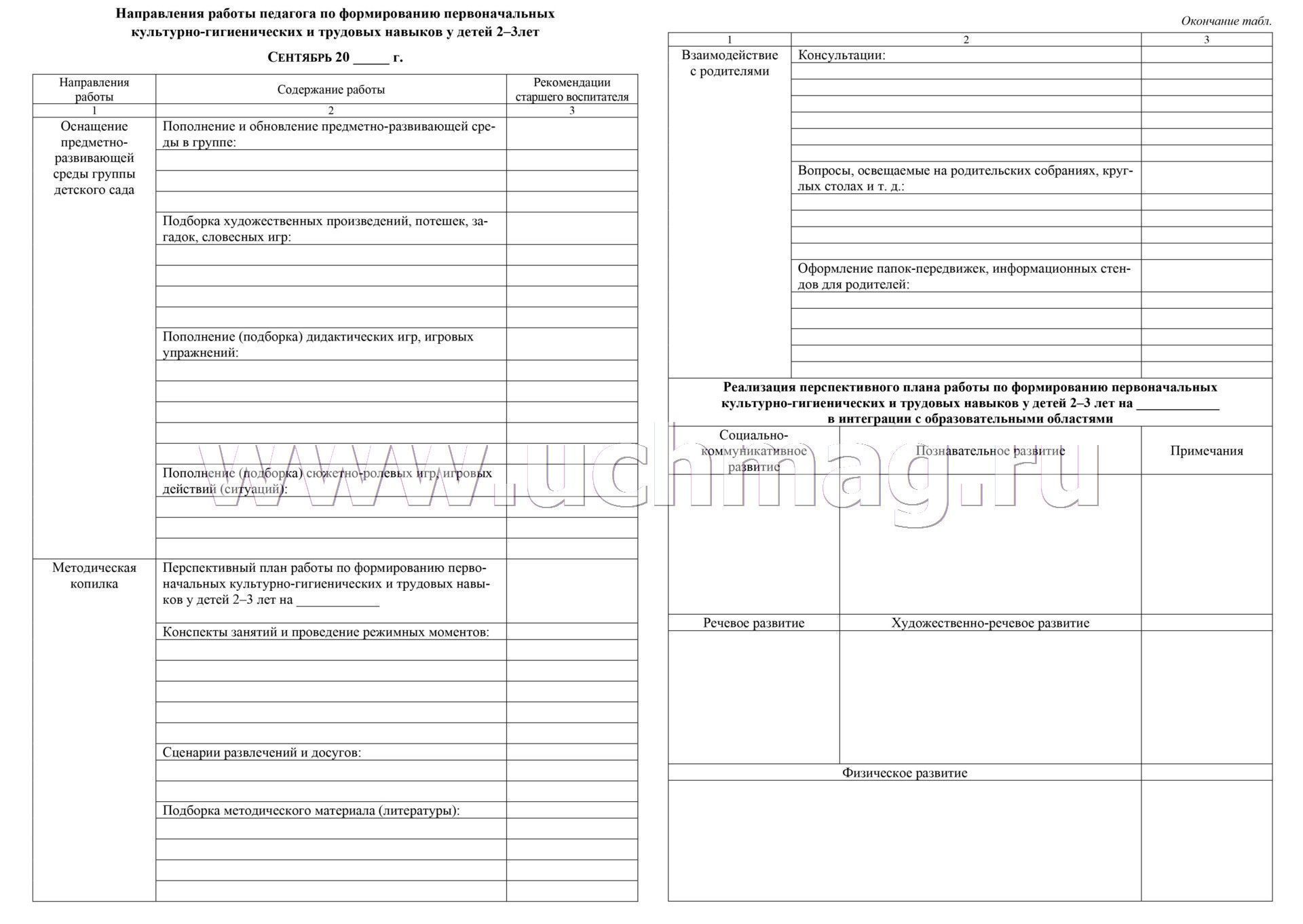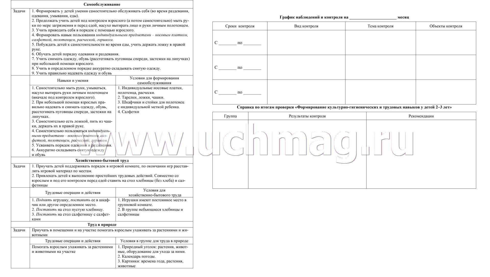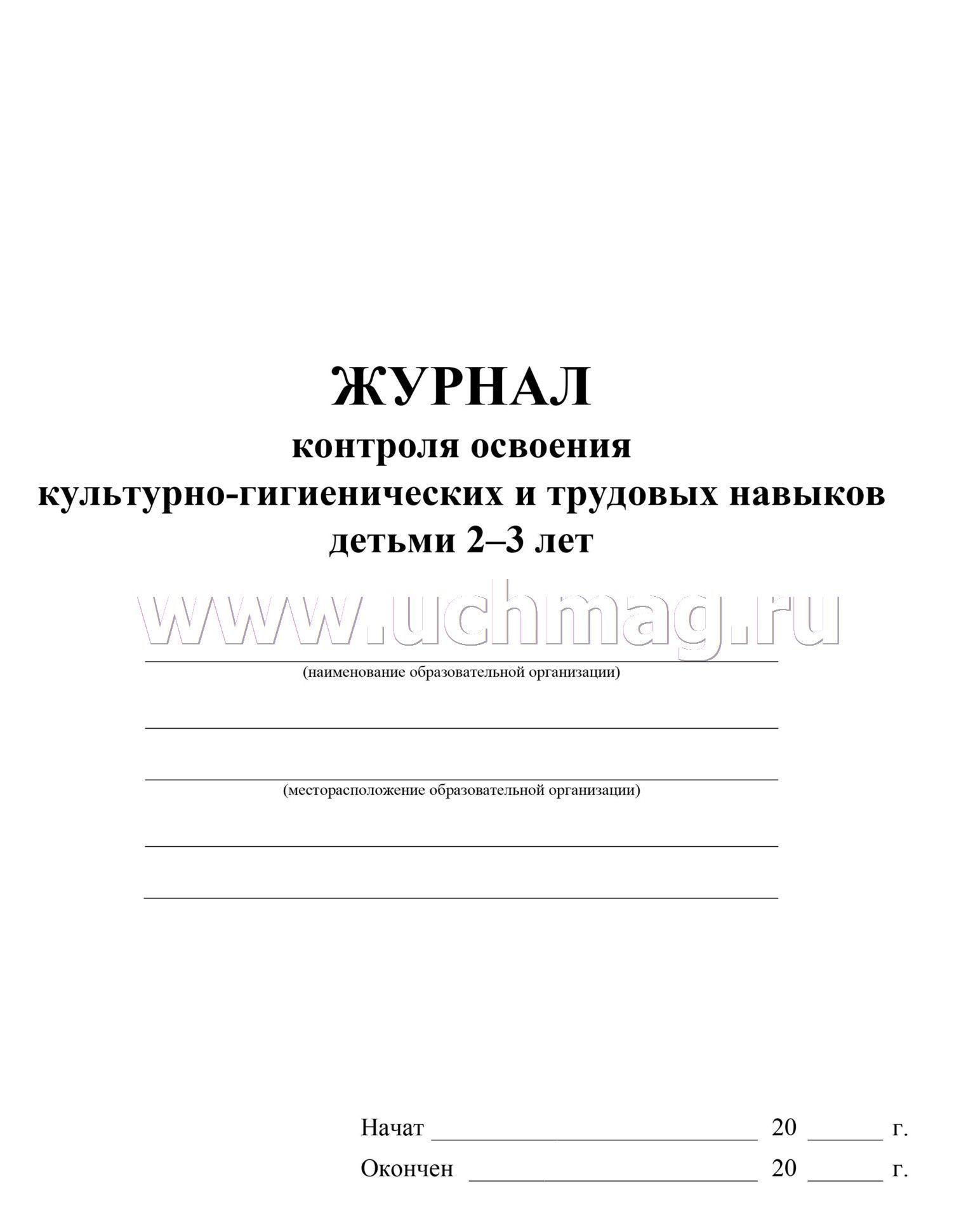 Журнал контроля освоения культурно-гигиенических и трудовых навыков детьми 2-3 лет