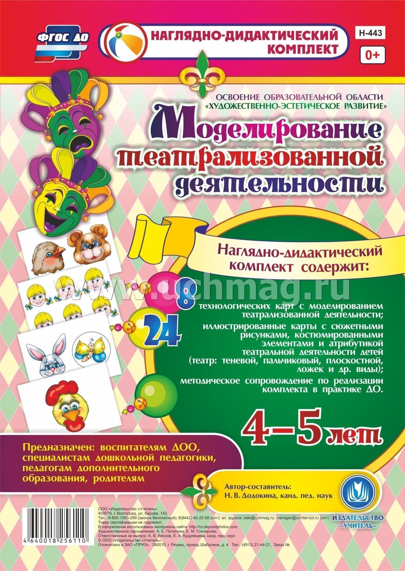 Предлагаемый наглядно-дидактический комплект включает 8 технологических карт для целостного и последовательного планирования образовательной деятельности и 24 иллюстрированные красочные карты с сюжетными рисунками, костюмированными элементами и атрибутикой к театральной деятельности детей (теневой, пальчиковый, плоскостной театр, театр ложек и другие виды).