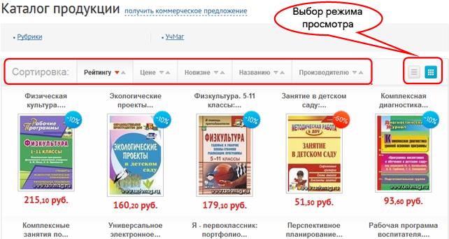 Для удобства просмотра каталога продукции есть два режима: "Показать списком" и "Показать плиткой". В любом из режимов Вы можете сделать удобную для Вас сортировку по Рейтингу, по Цене, по Новизне, по Названию, а также по Производителю.